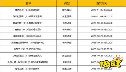 [10.27-11.2]一周新游预告:这些变态游戏零氪也能躺赢,特权直接拉满!变态版手游app有哪些 2025变态手游app最新合集2025安卓哪个手游平台好用 十大安卓手游平台app排行榜苹果手游盒子好用的十款免费版推荐 2025最火的苹果免费游戏app软件盘点魂斗三国手游无限资源获取攻略 高级红色角色免费获得方法乱世妖魔横行?你着八卦道袍画符,亲手降僵王、捉诡新娘!【10.24-10.26】周末福利活动:游戏道具/皮肤免费领,3天限时薅!0.01折游戏盒子实用的5款汇总 盘点目前最新上线折手游app我的魔法英雄伙伴手游七日攻略:资源全扒+战力狂飙,零氪也能当服霸!玩三国游戏还能薅羊毛?《笑梦江山》0.1折送十万连抽,福利拉满!