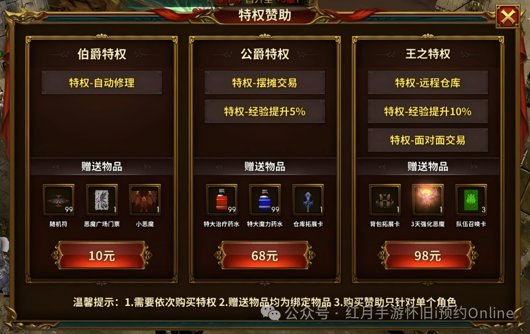 在公平性上,《荣耀出征》摒弃“氪金碾压”模式。采用点卡理念,玩家选三档便利型赞助特权,无属性加成,仅提供便捷功能,无其他充值窗口。核心道具靠打怪、刷副本、挑战BOSS获取。支持零手续费交易,玩家可搬砖赚钱。
