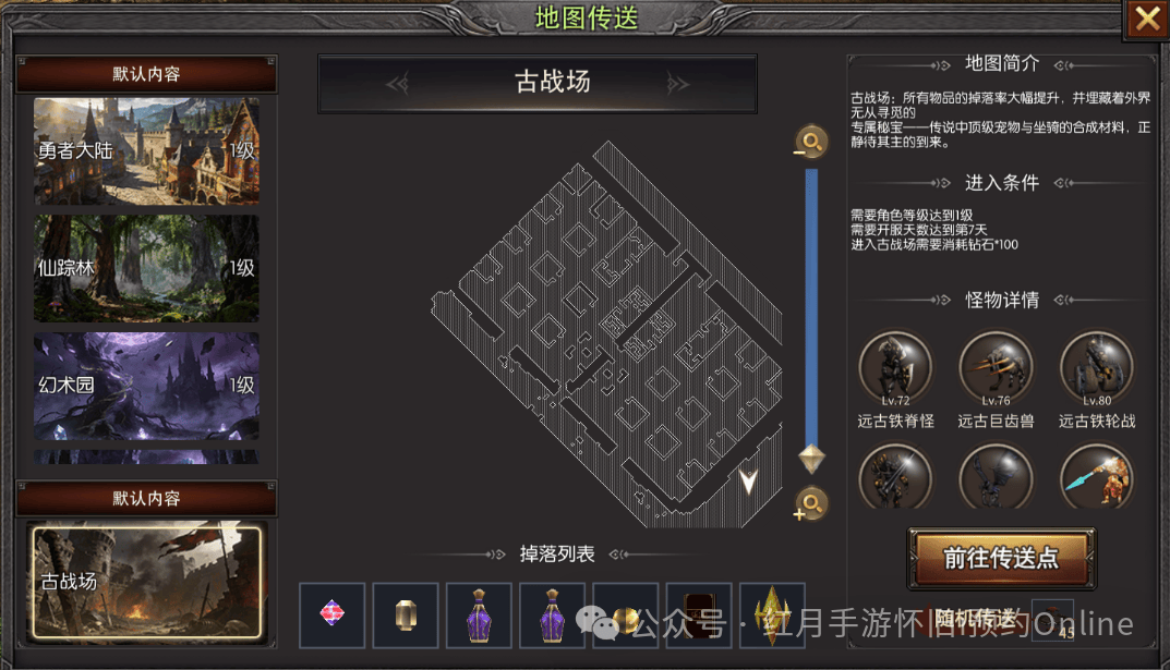 游戏设计了多个高收益地图与BOSS玩法。新手期推荐海底2层,中期是古战场1层,后期挑战高级地图。世界BOSS每日定点刷新,掉落顶级装备。恶魔广场副本可升级、搬砖,难度梯度分明,单人或组队均可参与。