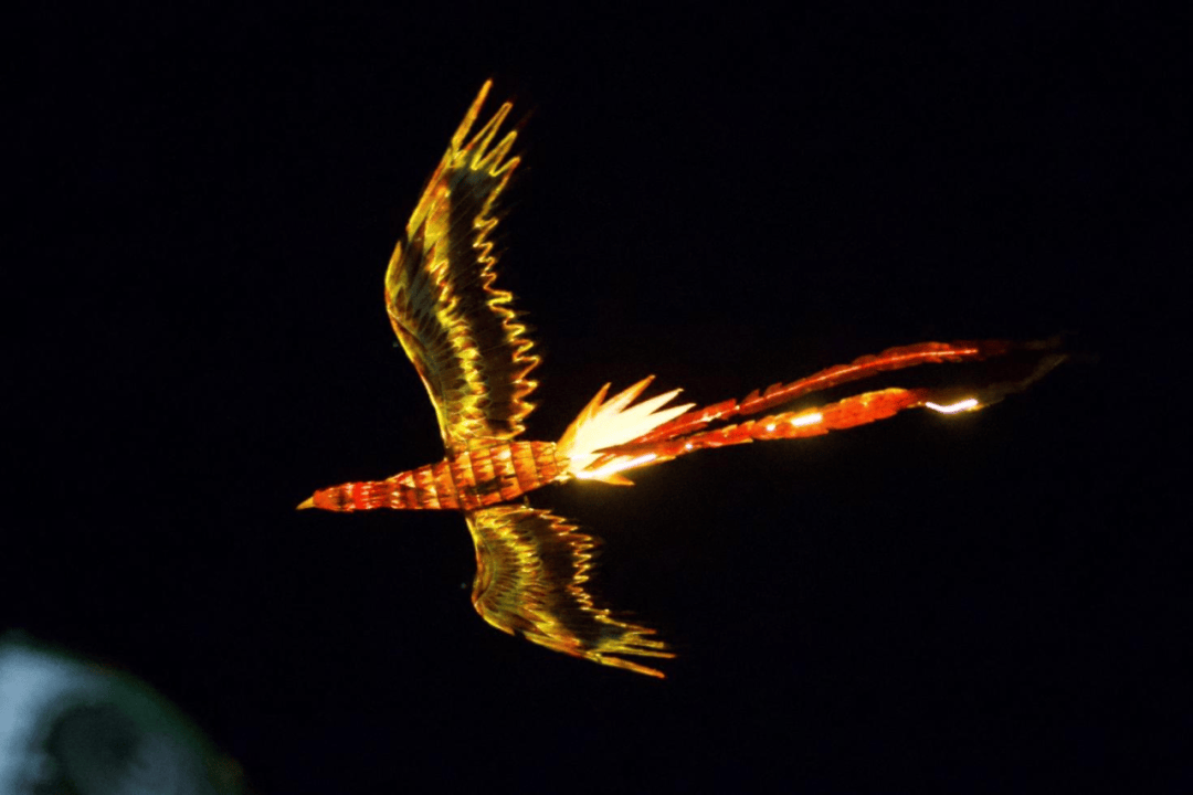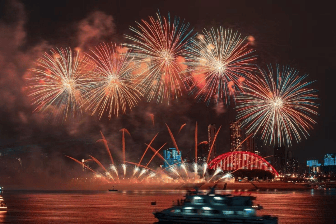 由非遗灯阵、麒麟机甲、机器人、机器狗、萌虎花车组成的超级炫彩巡游队伍,点亮整个夜晚。随后,震撼的高空烟花秀与无人机“凤凰飞天”表演交织上演,共谱一场璀璨的苍穹献礼!