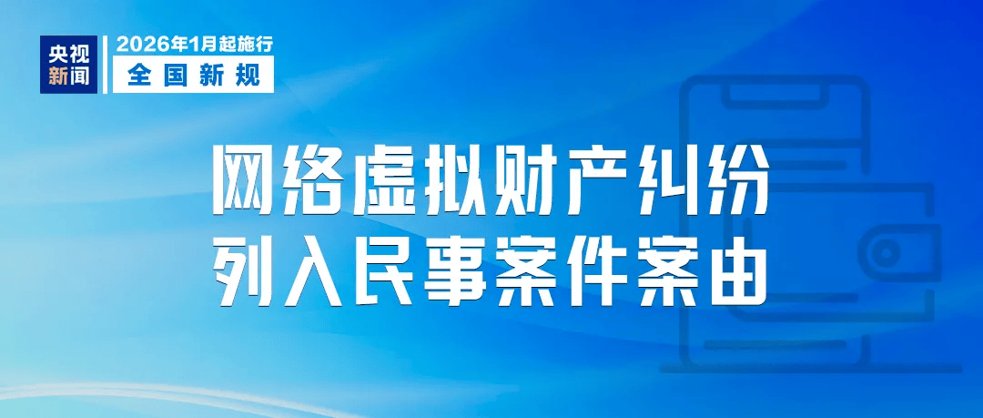 新修改的《民事案件案由规定》自2026年1月1日起施行。民事案件案由是对当事人诉争的法律关系性质进行的概括。此次新修改增加数据、网络虚拟财产相关案由,并细化了知识产权相关案由等。