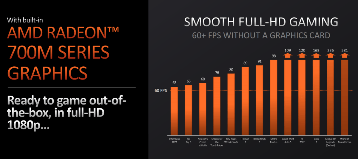 从AMD官方数据来看,在搭配驱动程序提供的AMD HYPER RX & AFMF功能加持下,锐龙7 8700G内置的Radeon 780M核显甚至可以让最新的大型3A游戏在FHD分辨率下轻松保持60fps以上平均帧率,部分大作甚至达到了90fps以上,已经达到了十分流畅的水平。