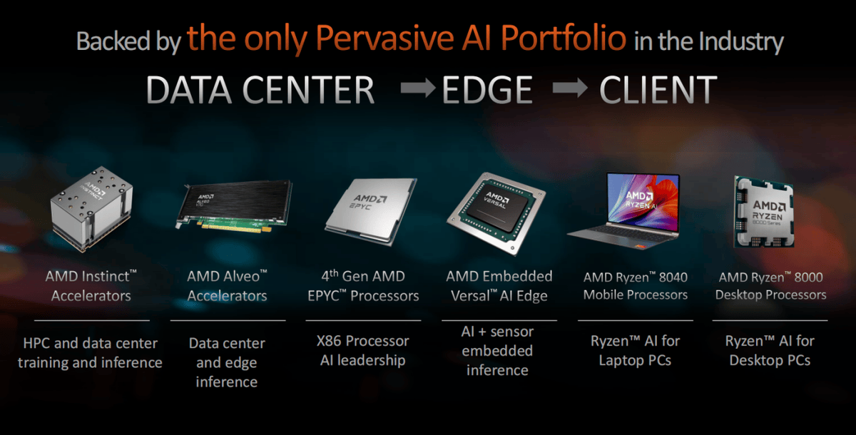 锐龙AI处理器的诞生意味着AMD已经是业内拥有最全面AI解决方案的制造商,完美覆盖从数据中心、边缘计算到客户端的全平台。它拥有针对HPC与数据中心的Instinct加速器、针对数据中心与边缘计算的Alevo加速卡、性能遥遥领先的第四代EPYC处理器、嵌入式Versal AI Edge、锐龙8000系列处理器——目前业内还没有其他厂商能够拥有如此全面的AI产品线G系列桌面处理器不但拥有强大的全面AI计算性能,也拥有潜力非常大的生态圈成长空间,这也是AMD在AI方面独有的核心优势。