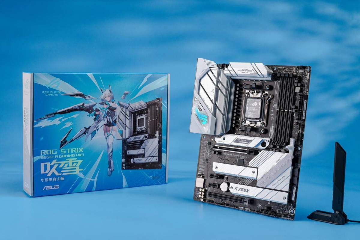 本次测试所用的ROG STRIX B650-A GAMING WIFI吹雪是非常具有代表性的一款豪华级B650主板,它配备了12+2组供电模组,并为VRM供电元件配备了巨大的银白色散热装甲,确保满载工作时也能处于安全温度状态,让处理器稳定输出性能。在更新最新BIOS之后,即可完美支持锐龙8000G处理器,并支持解锁功率墙、对其CPU与GPU进行全面超频。由于拥有优秀的电气性能,它可以轻松支持高频DDR5内存,实测搭载锐龙8000G可搭配DDR5 7800+稳定使用。扩展性部分,它提供了3个M.2插槽,包含1个PCIe 5.0×4和2个PCIe 4.0×4 M.2,并提供了两个全长PCIe插槽,方便玩家进行扩展升级。易用性方面,它配备了显卡易拆键、M.2 Q-Latch,方便玩家装机,而BIOS FLASHBACK和Q-LED则方便DIY玩家调试。网络部分,它同时拥有WIFI 6E无线千兆有线网卡,可以满足各种应用环境的网络需求。