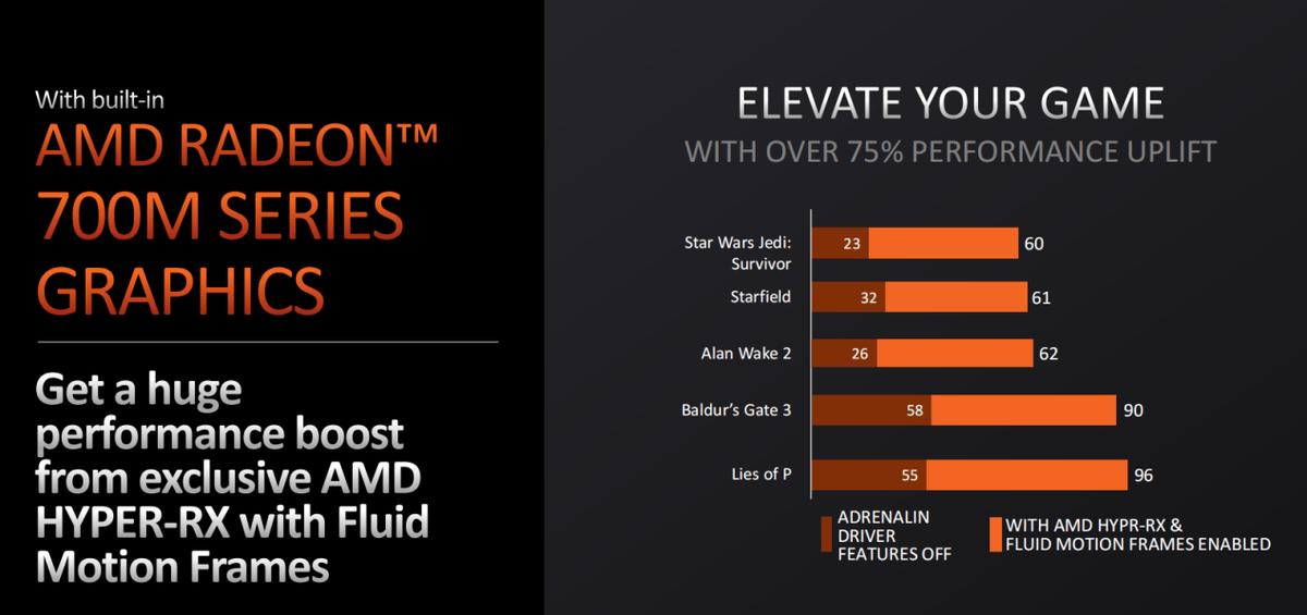 特别值得一提的是,在锐龙8000G正式上市之时,AMD还会同时发布支持AFMF的驱动程序(在没有提供FSR3的游戏中提供帧生成功能),到时候玩家只需要在驱动面板中打开Hyper-RX功能,就能同时开启AFMF、Radeon Anti-Lag、Radeon Boost等一系列黑科技,从而让游戏流畅度进一步大幅提升。