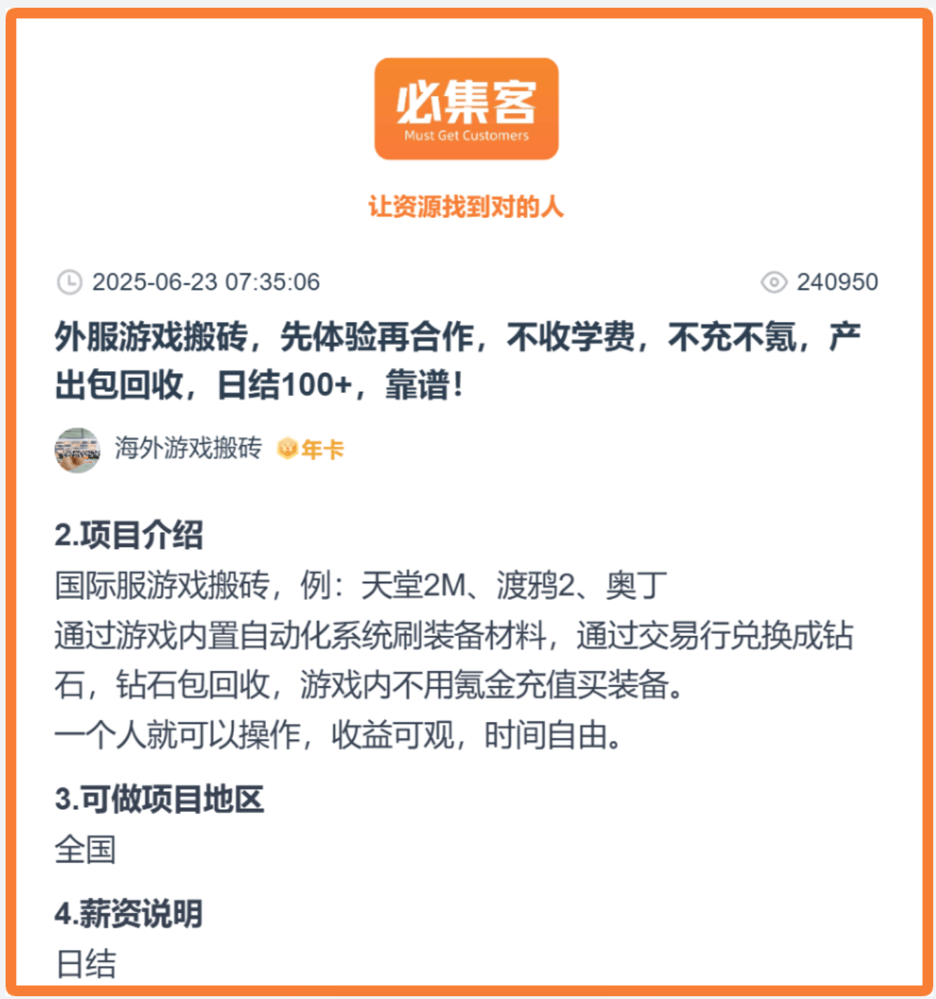 如果对操作流程不太清楚,可以通过必集客集客圈这类正规的游戏资源对接平台,挑选口碑好的专业游戏搬砖工作室合作。返回搜狐,查看更多