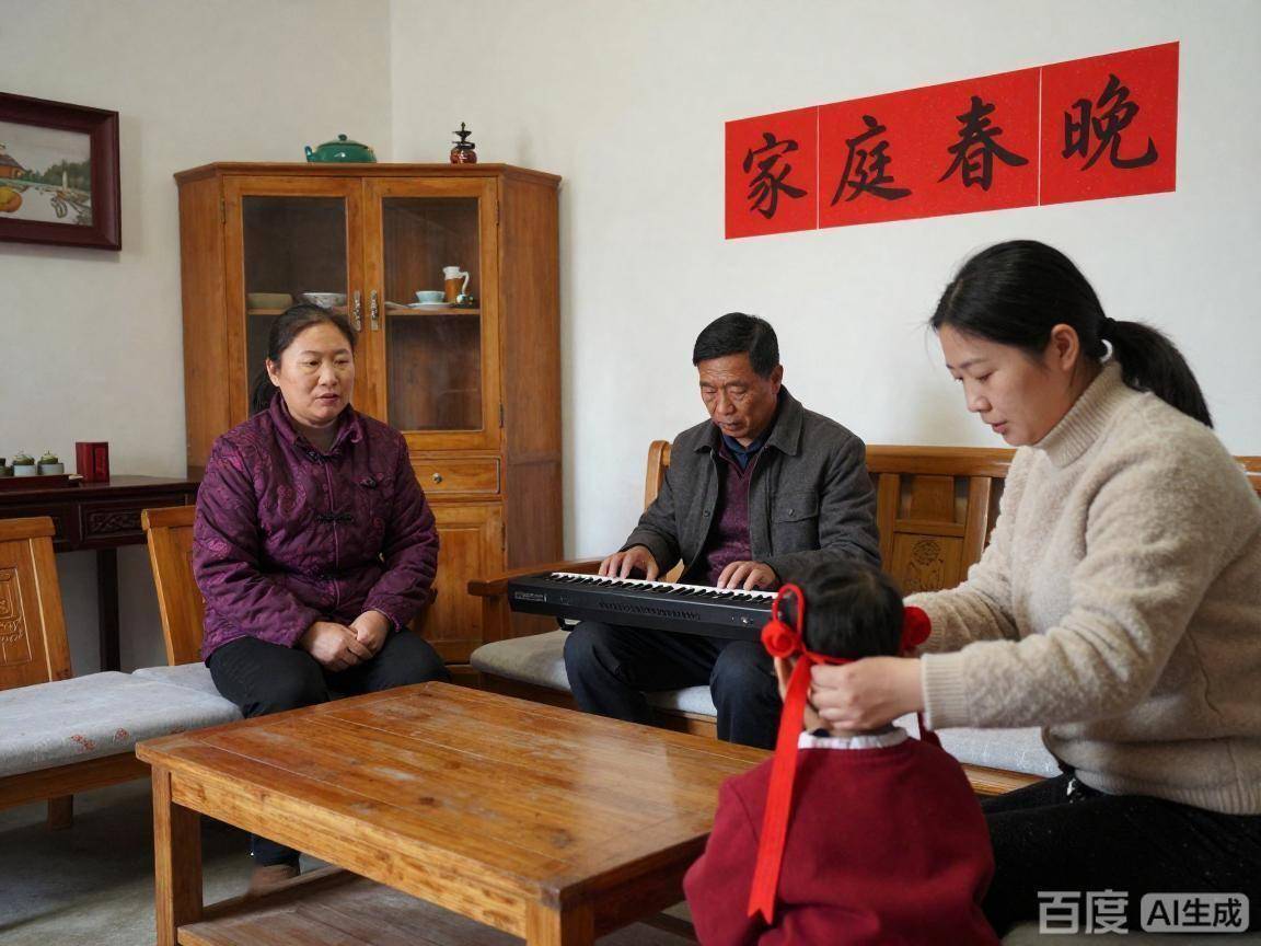 安徽阜阳这个大家族的家庭春晚,虽然没有登门拜访的繁琐礼节,却有着最真诚的陪伴:长辈们登台献艺,展现自己的风采;晚辈们围坐台下,认真观看、鼓掌喝彩;孩子们嬉笑打闹,给一家人带来欢乐;晚会结束后,大家围坐在一起吃长桌宴,畅谈家常、回忆过往,这份热闹与温暖,远比“登门拜访、匆匆寒暄”更能打动长辈,更能维系亲情。
