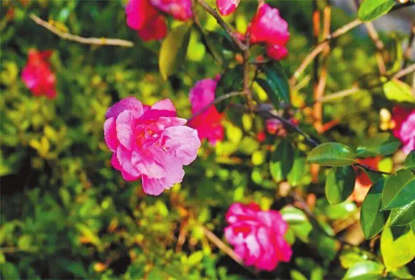 除了本地游客,茶花物种园也吸引着八方来客。“这个时候我们陕西还在下雪,几乎看不到花开。紫溪山的茶花园规模大、花色艳,在其他地方很少见到,我觉得这里的美景被低估了。”从西安自驾而来的游客张国兰与家人漫步园中,拍照分享,喜悦洋溢。