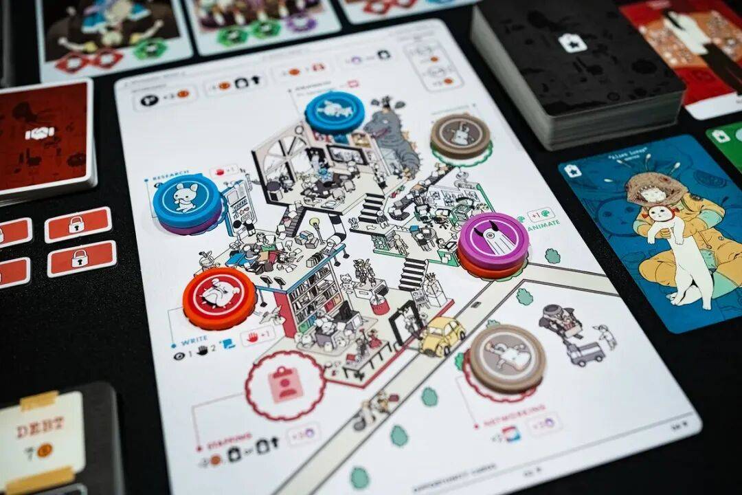 玩法围绕动画生产全流程展开,分公共版图与个人工作室两大区域。公共版图采用工人放置机制,卡牌与板块独一无二,先到先得;个人工作室需管理员工、预算与作品,每部动画需集齐设定、情节、反转三类脚本及美术资源才能发行,题材贴合市场趋势可获高加成,偏门作品也能靠邪典路线出圈。员工分编剧、画师等工种,初始为“空壳”状态,可晋升为加成丰厚的“元气员工”,但高额工资与贷款利息构成持续经济压力,精准还原行业资金困境。