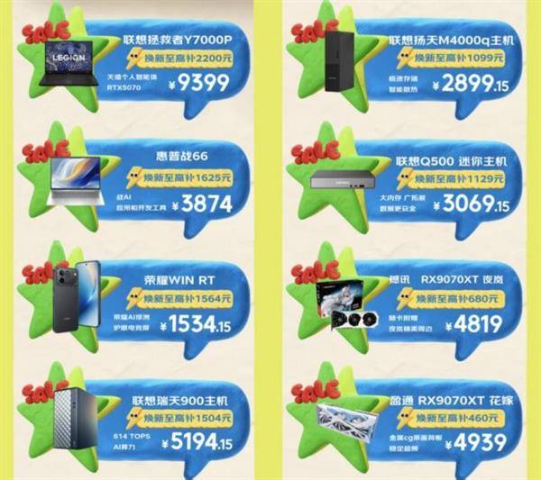 对于追求极致性能的游戏玩家和需要高效办公的职场人士,一台性能强劲的电脑无疑是核心生产力。此次活动集结了众多热门电脑及组件:联想拯救者Y7000P笔记本本焕新至高补贴2200元,到手价仅9399元;惠普战66商务本焕新至高补贴1625元,到手价3874元;荣耀WIN RT笔记本焕新至高补贴1564元,到手价1534.15元。如果你更倾向于台式机的稳定与拓展性,联想瑞天900主机焕新至高补贴1504元,到手价5194.15元;联想扬天M4000q主机焕新至高补贴1099元,到手价2899.15元;而小巧灵动的联想Q500迷你主机焕新至高补贴1129元,到手价3069.15元,是桌面办公的绝佳选择。对于DIY玩家,两款高人气显卡——撼讯RX9070XT夜岚与盈通RX9070XT花嫁也参与活动,焕新至高分别补贴680元和460元,到手价4819元和4939元,助你轻松打造专属高性能主机。
