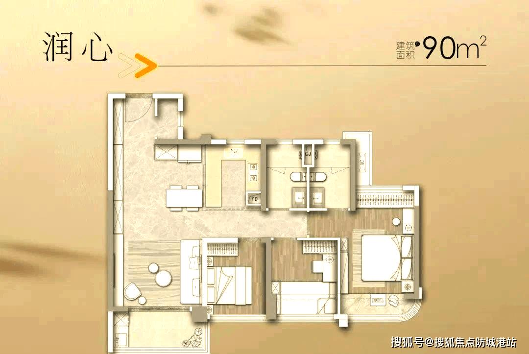 90至92平方米的三房两厅两卫户型,是项目的主力户型,深受市场欢迎。90平方米做到了四开间朝南,三个卧室均朝南,采光面极宽,阳光充足。这种设计不仅提升了居住的舒适度,更有助于家庭成员的健康。