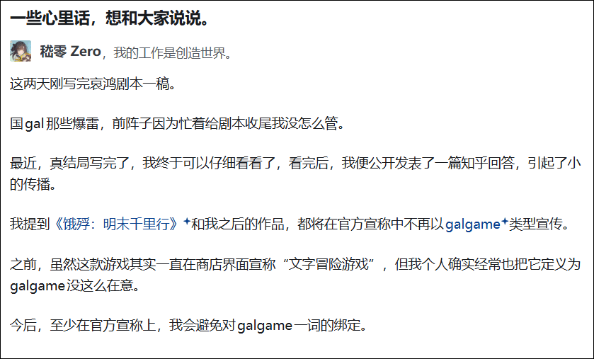 嵇零:“我现在在做一个小的if线,很多人打完我的游戏,情绪没有出口,我有责任给大家一个……善后吧”